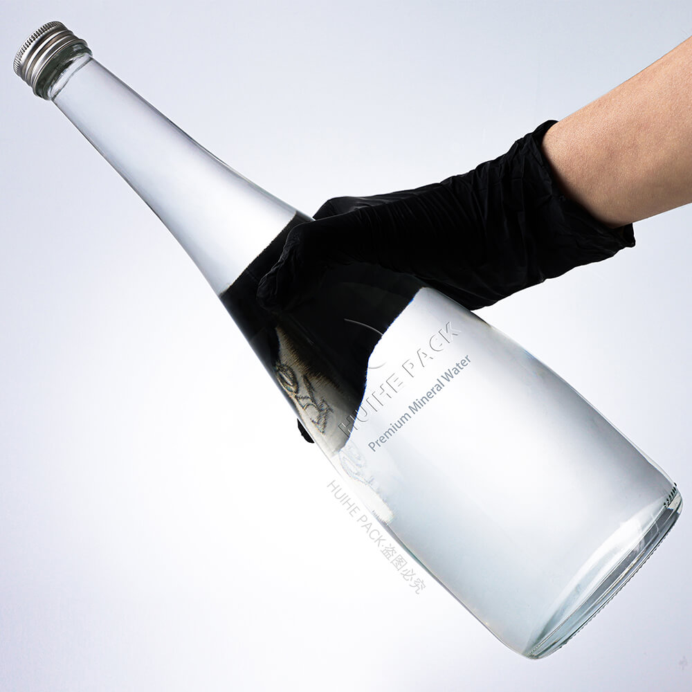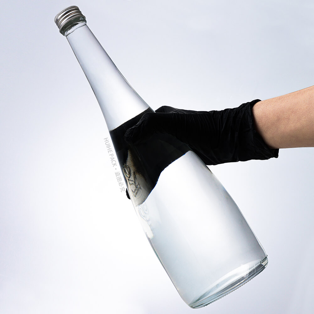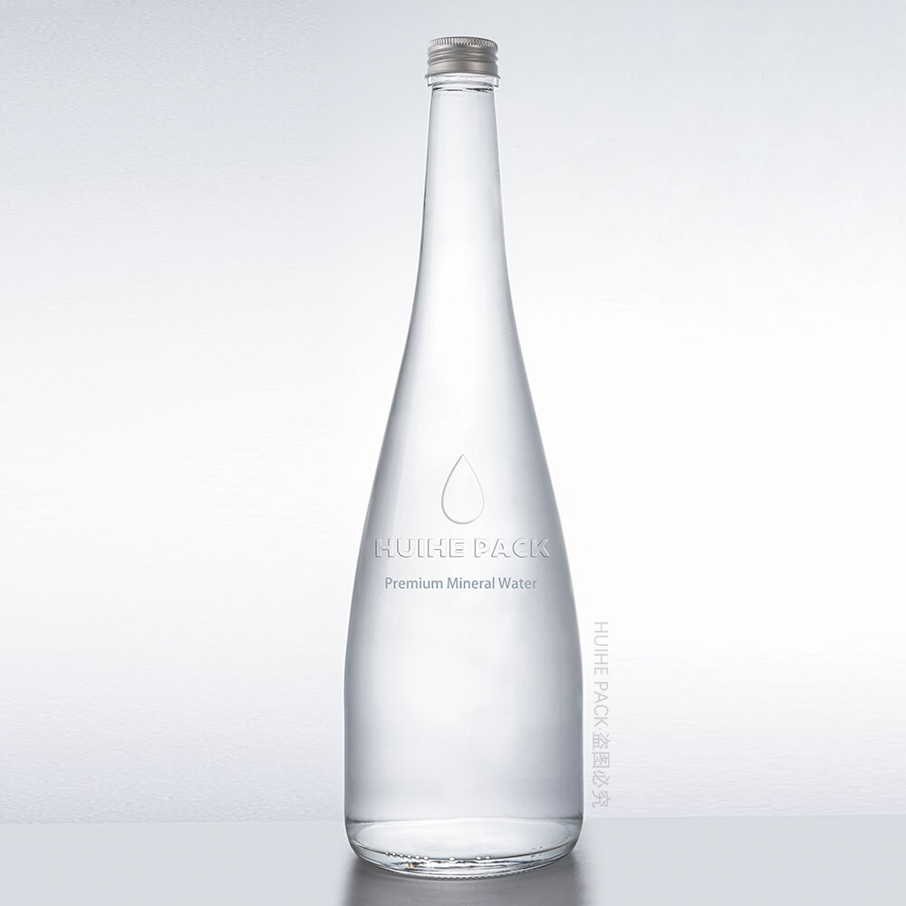 Questa bottiglia d'acqua in vetro da 900 ml presenta una forma affusolata elegante e allungata: è alta 322 mm con un diametro di base di 93 mm, vanta curve morbide e fluide e una finitura cristallina che sembra moderna e lussuosa, perfetta per i marchi di acqua minerale di fascia alta che desiderano dare un'impressione raffinata.