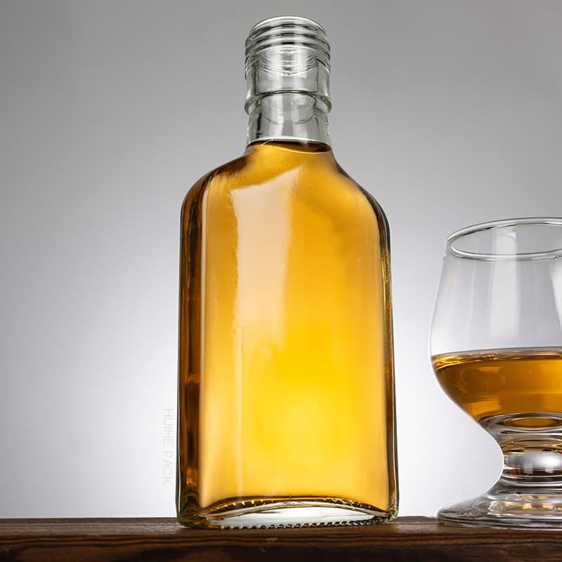 Bottiglia di liquore in vetro piatto all'ingrosso personalizzata da 125 ml con tappo a vite