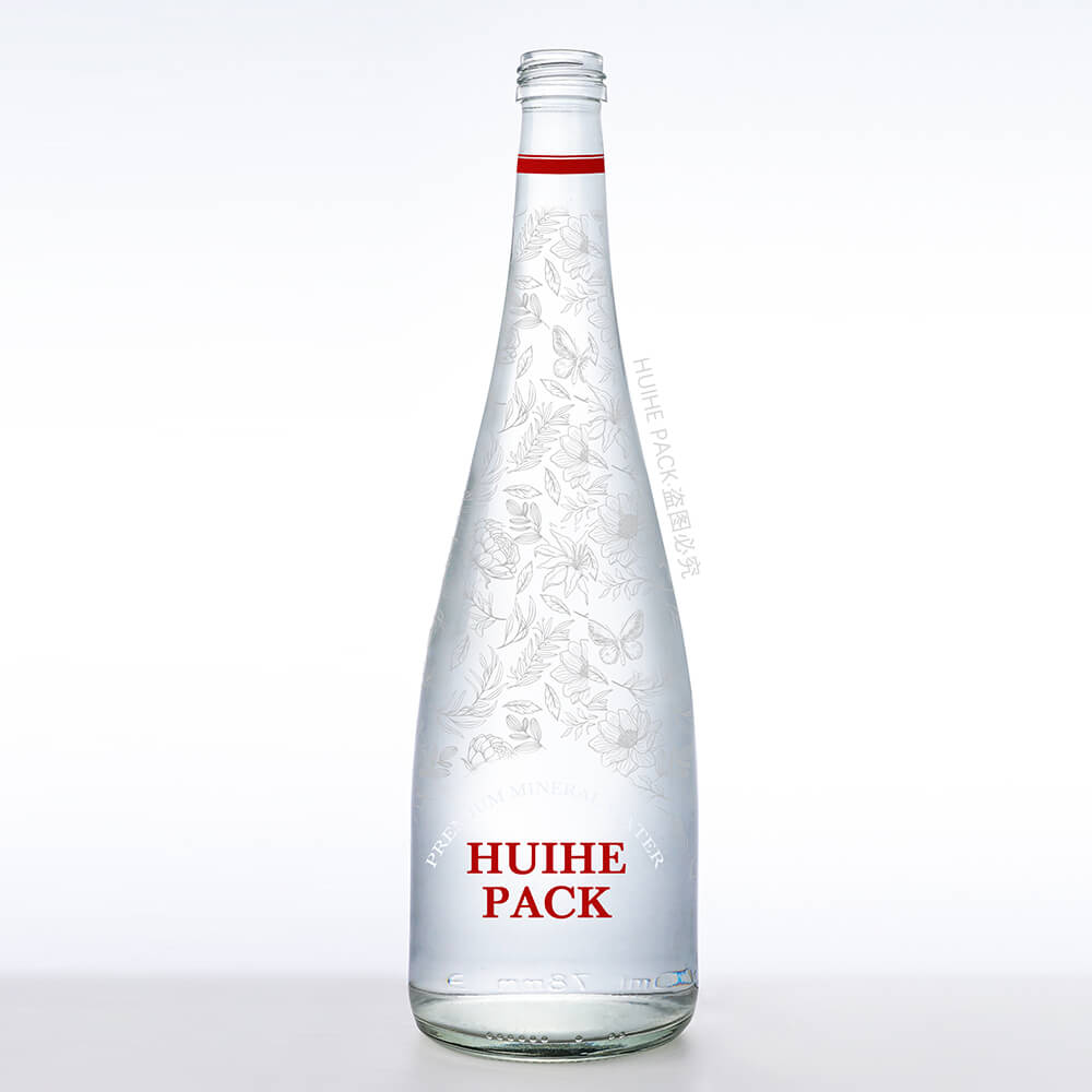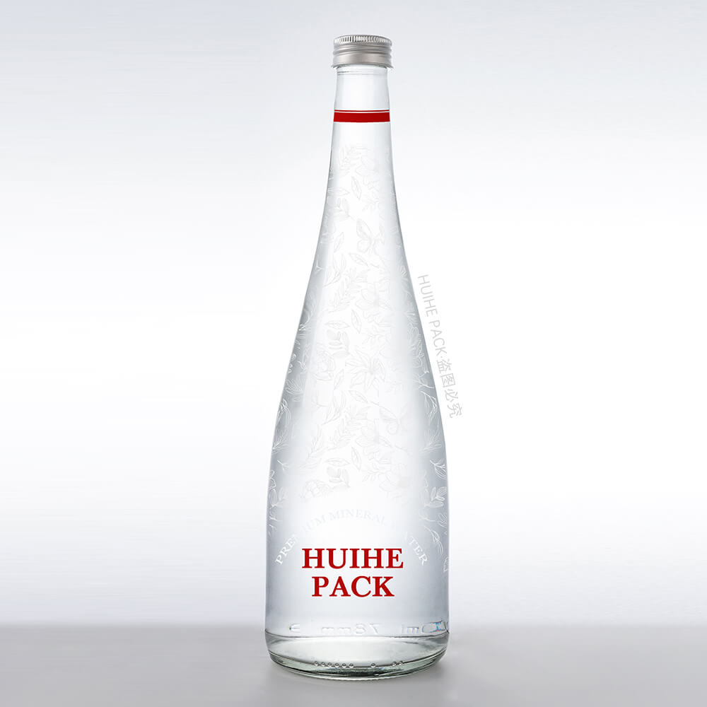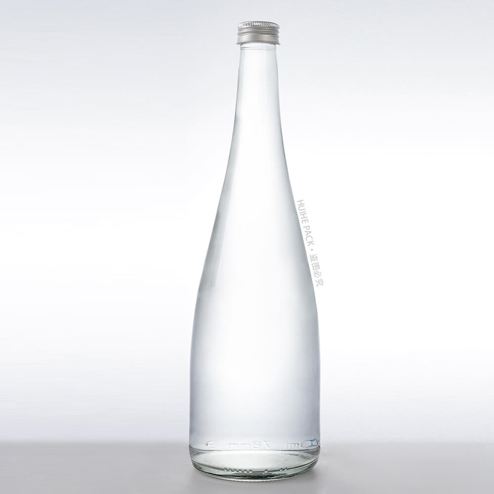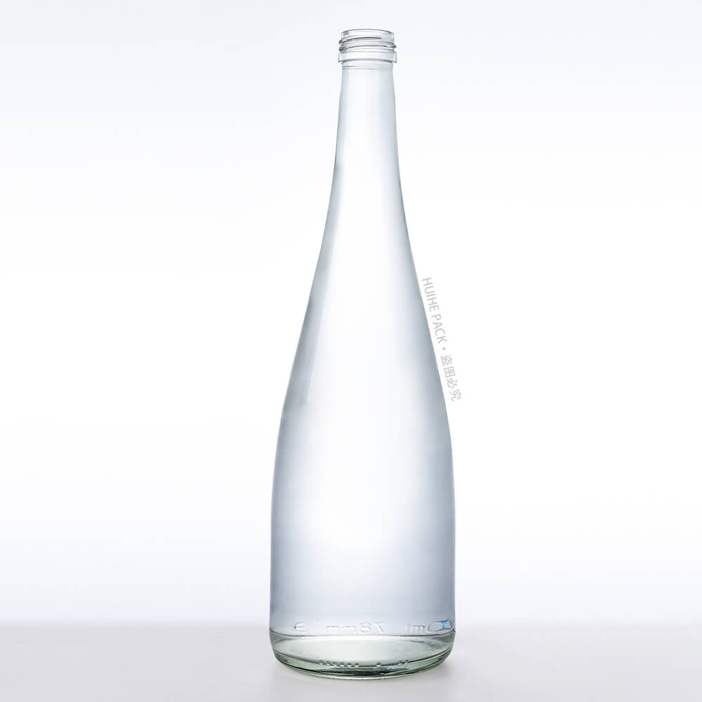 Questa bottiglia d'acqua in vetro da 750 ml presenta una forma affusolata elegante e allungata: alta 305 mm con un diametro di base di 87,5 mm, la sua silhouette elegante, che si allarga gradualmente e la finitura cristallina emanano un'atmosfera raffinata e raffinata, ideale per i marchi di acqua minerale premium che mirano a elevare la presentazione del loro prodotto.
