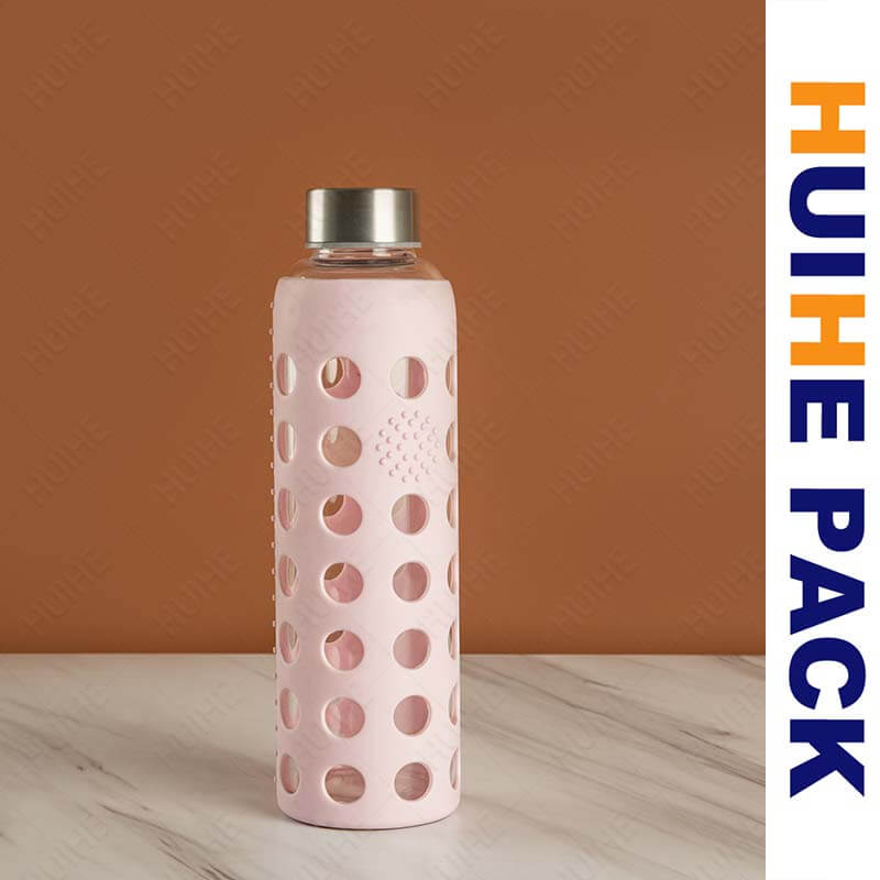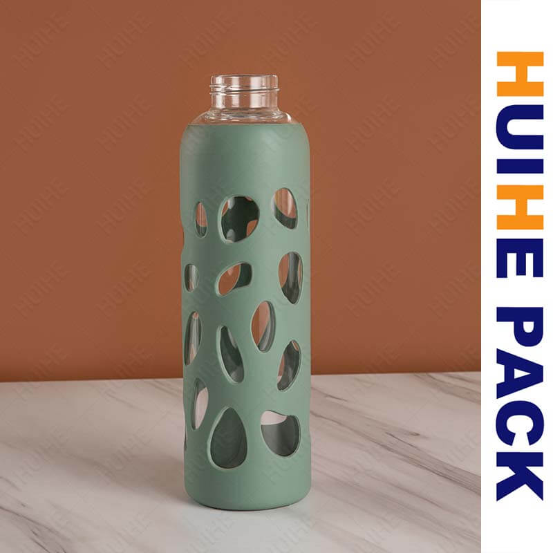 Questa bottiglia d'acqua in vetro borosilicato presenta una forma cilindrica elegante e allungata, abbinata a diversi design decorativi: uno stile ha una finitura in vetro marmorizzato colorato che aggiunge un tocco artistico, mentre altri sono avvolti in maniche in silicone con motivi ritagliati unici che rivelano il vetro trasparente sottostante. Questi design fondono fascino visivo e praticità, facendo risaltare la bottiglia nell'uso quotidiano.