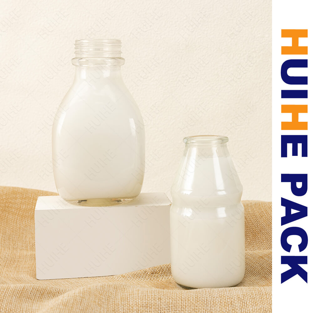 Questa bottiglia da latte in vetro (dalla classica forma a caraffa) presenta un collo affusolato che si allarga in un corpo pieno e strutturato, abbinato a vetro trasparente che evidenzia chiaramente il contenuto. Si adatta a vari latticini e bevande.