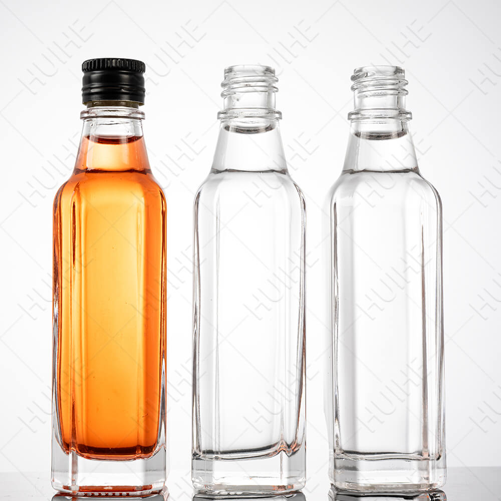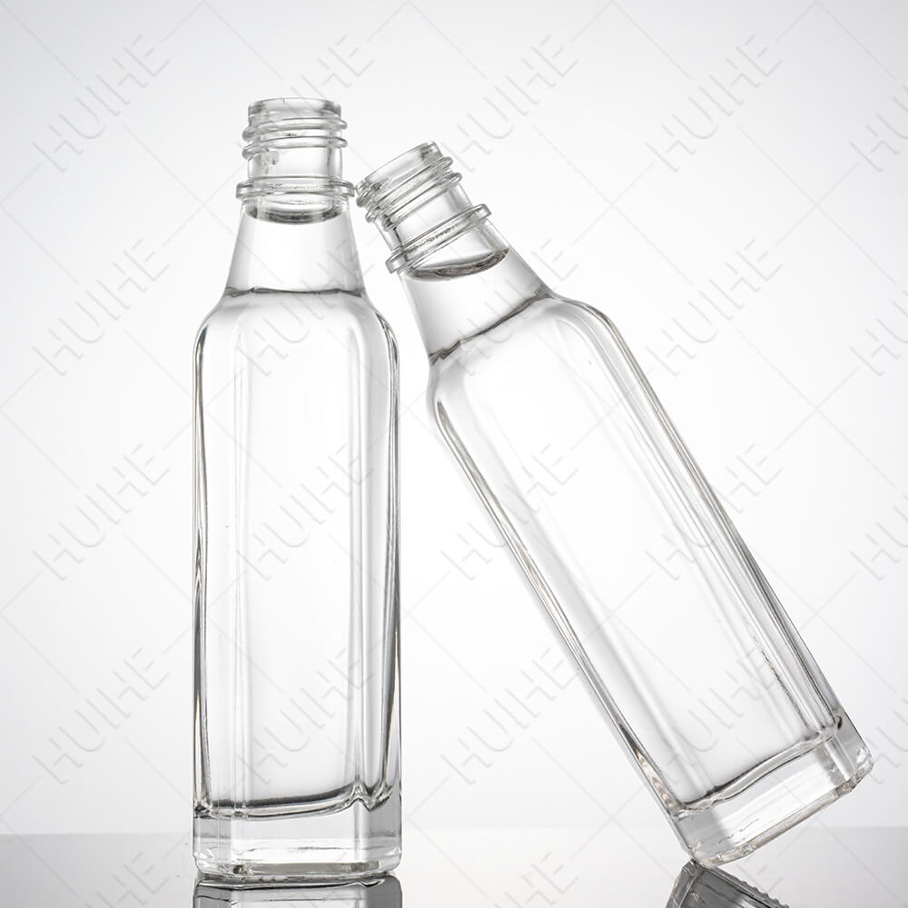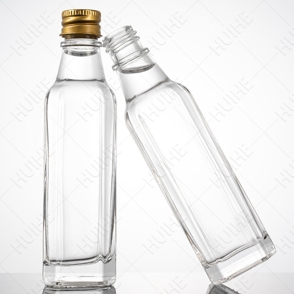Questa mini bottiglia di liquore in vetro da 50 ml di Huihe presenta un'elegante silhouette rettangolare con finitura trasparente e collo a vite, ideale per campioni di liquori, degustazioni premium o iniziative promozionali, offrendo una chiara visibilità del prodotto e un marchio sofisticato. Realizzato in vetro di alta qualità, è sottoposto a ispezione al 100% per garantire qualità stabile, nessuna rottura e tenuta senza perdite.